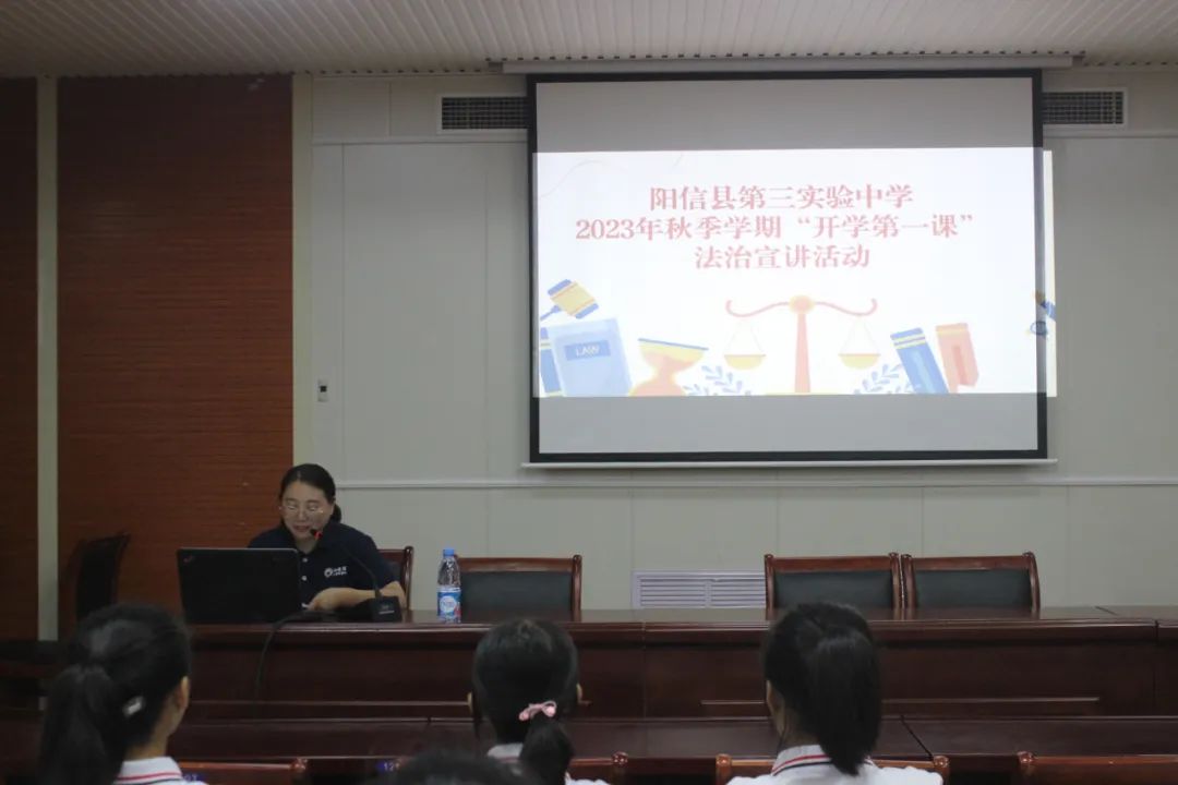 活动现场,阳信县9958应急救援队队长王福德围绕预警科普、预警案例、应急避难场所三个方面开展防震减灾知识讲座,结合图片和案例,耐心细致的为大家讲解了地震的原理、收到预警后应该怎么办、手机地震预警系统如何设置及地震预警的意义等科普知识,同时,详细介绍了我县应急避难场所的分布,为师生们上了一堂生动的“防震减灾知识”课。随后,开展了“开学第一课”法治专题讲座,司法所工作人员王晓迪结合实际案例,为师生们科普了法律知识,提高了他们的法治意识。