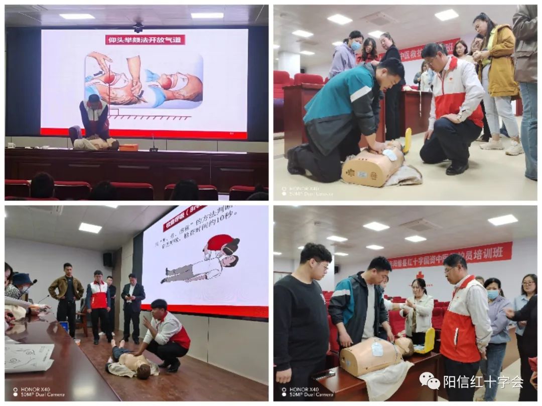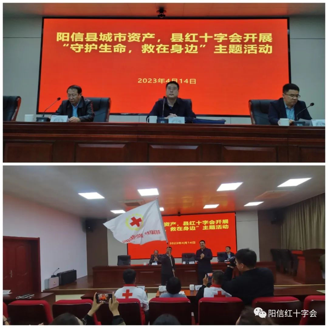4月11日,上午在县卫生健康局五楼会议室召开2023年阳信县红十字国资中医救护员培训班,县红十字会党组书记、副会长张志强同志、县城市资产党委副书记、总经理吴永国同志、县城市资产党委委员、国资中医药经理孙永为同志参加培训,县红十字会党组书记、副会长张志强向“阳信县城市资产红十字学雷锋志愿服务队”授旗,红十字救护员讲师王福德、马智杰同志有针对性进行了普及红十字知识,应急救护知识专题培训,讲解心肺复苏、创伤包扎与AED使用等急救知识。