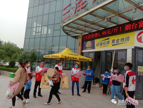 五、阳信县红十字会携手阳信县红十字逸佳应急救援队开展“提升基层应急能力,筑牢防灾减灾救灾的人民防线”为主题的宣传活动。县红十字志愿者在三泽购物超市、中兴购物中心等地,采取定点、分散等宣传方式,发放了《中华人民共和国红十字法》《应急救援知识培训指南》等宣传单,向广大群众宣传普及防灾、备灾、救护知识,普及自救互救技能。