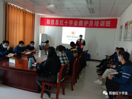 一、举办了风电阳信救护员培训班,共培训34名工作人员。阳信县红十字会应滨州阳信风电项目部邀请,请市红十字会老师对其公司工作人员进行应急救护培训。